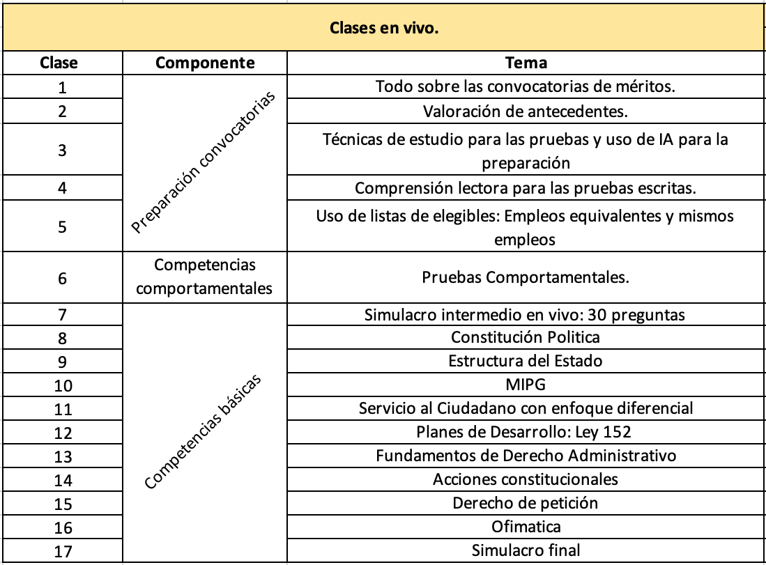 Este taller es la oportunidad perfecta para llegar con ventaja a los concursos de mérito y aumentar significativamente tus posibilidades de ser nombrado en un cargo estable, bien remunerado y con proyección en el sector público.